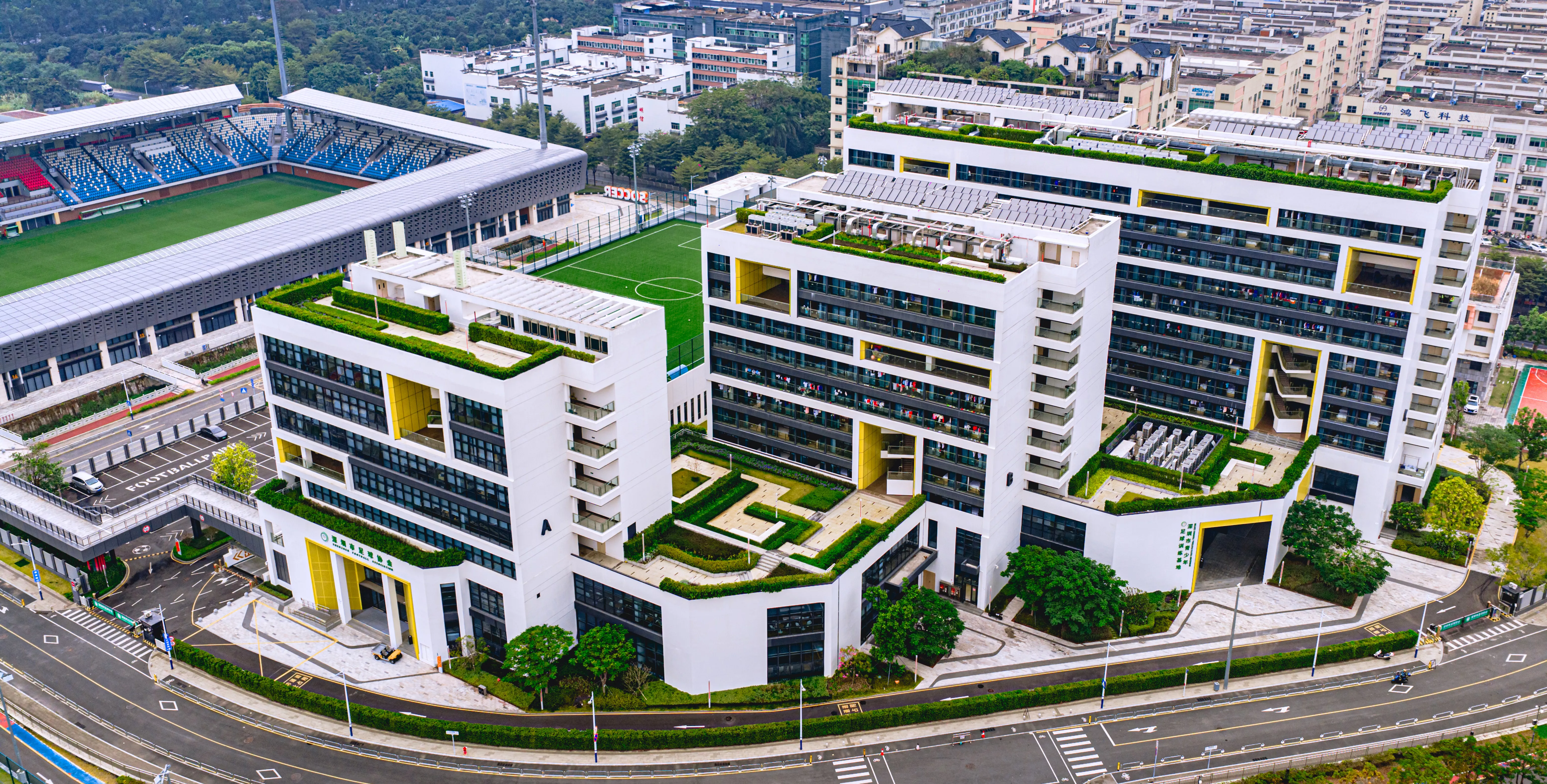深圳市青少年足球训练基地位于光明区公明街道李松蓢社区,该项目于2015年立项,由深圳市政府投资10.8亿元建设,占地近20万平方米,建筑面积8.3万平方米,共分两个标段,一标段于2021年3月竣工投入使用,包括7片11人制足球场(含3片天然草、4片人造草),3片5人制和相关配套设施,二标段于2024年12月竣工,目前正在移交阶段,包括具备可承办国际级比赛条件的1万座专业足球场、800人容量运动员公寓、综合保障区和包括篮球馆、羽毛球馆在内的全民健身活动中心等相关场馆设施。